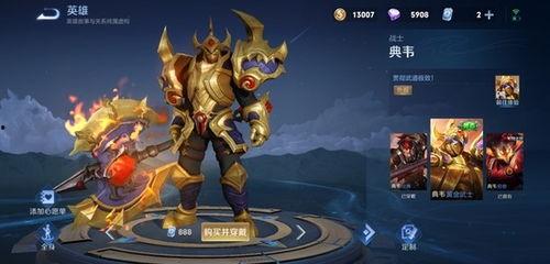 首先,我们来聊聊这款皮肤的背景故事。据官方透露,这款典韦皮肤的故事背景设定在古代战场,典韦化身成为一名英勇的将军,手持巨斧,勇猛无比。在这个故事中,典韦为了保卫家园,与敌人展开了一场惊心动魄的战斗。而这款皮肤的设计灵感正是来源于这场战斗。